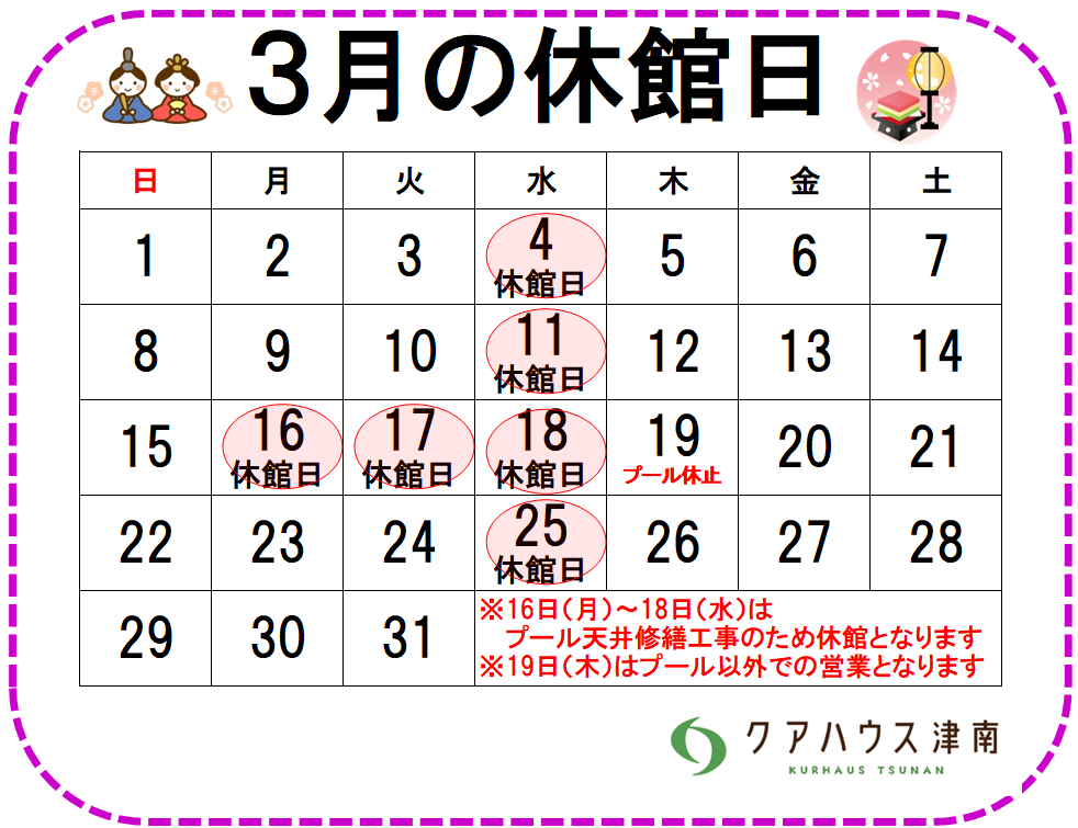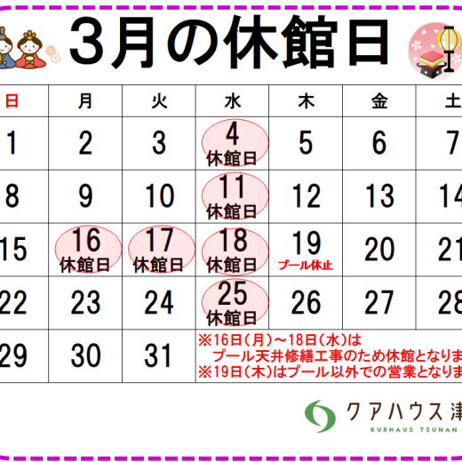 営業再開のお知らせいつもクアハウス津南をご利用いただきありがとうございます。
